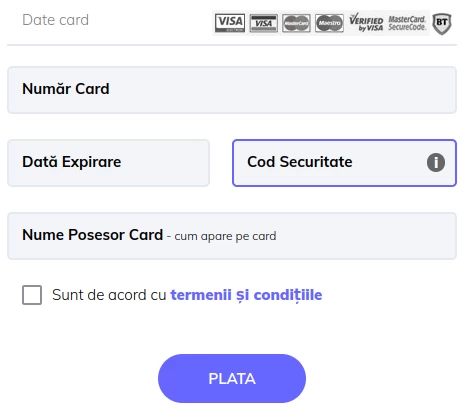 - Po priradení názvu karty vás systém automaticky presmeruje na stránku spracovateľa platieb, kde budete musieť vyplniť údaje o karte, ktorú chcete uložiť. Procedúru potvrdíte kliknutím na tlačidlo PLATIŤ.