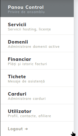 - Po prihlásení do účtu prejdeme do sekcie Karty z hlavného menu zobrazeného na ľavej strane.