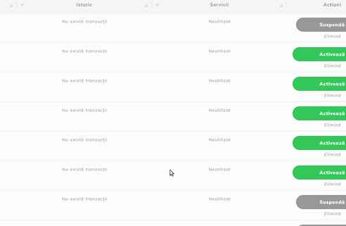 8. Zoznam akcií Aktivovať / Pozastaviť / Odstrániť karty