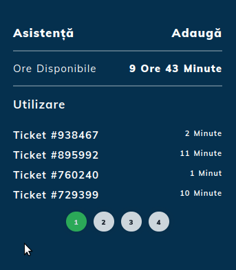 - Stále na stránke, na ktorej sa nachádzame, je ďalšie okno, ktoré počíta hodiny podpory použité na rôzne operácie. V rozhraní uvidíte, že pre každú individuálnu požiadavku bude v účte otvorený tiket podpory, ktorý bude obsahovať informácie týkajúce sa fakturovanej procedúry, ako aj zostávajúce hodiny podpory.
