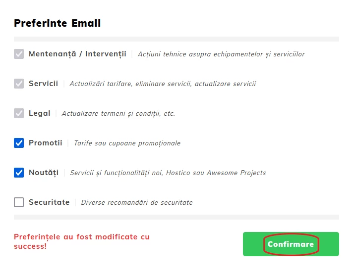 Aktualizujte preferencie e-mailu vo svojom účte Hostico, aby ste dostávali personalizované oznámenia o údržbe, službách, akciách a bezpečnosti.