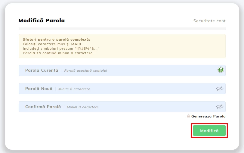 - Po zadaní hesla kliknite na tlačidlo Zmeniť.