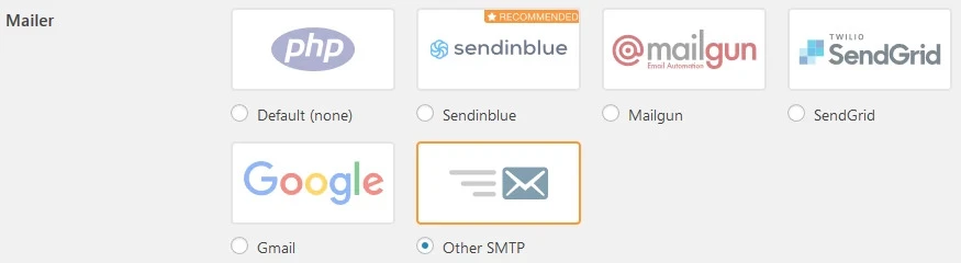 - V sekcii Mailer vyberte možnosť Other SMTP.