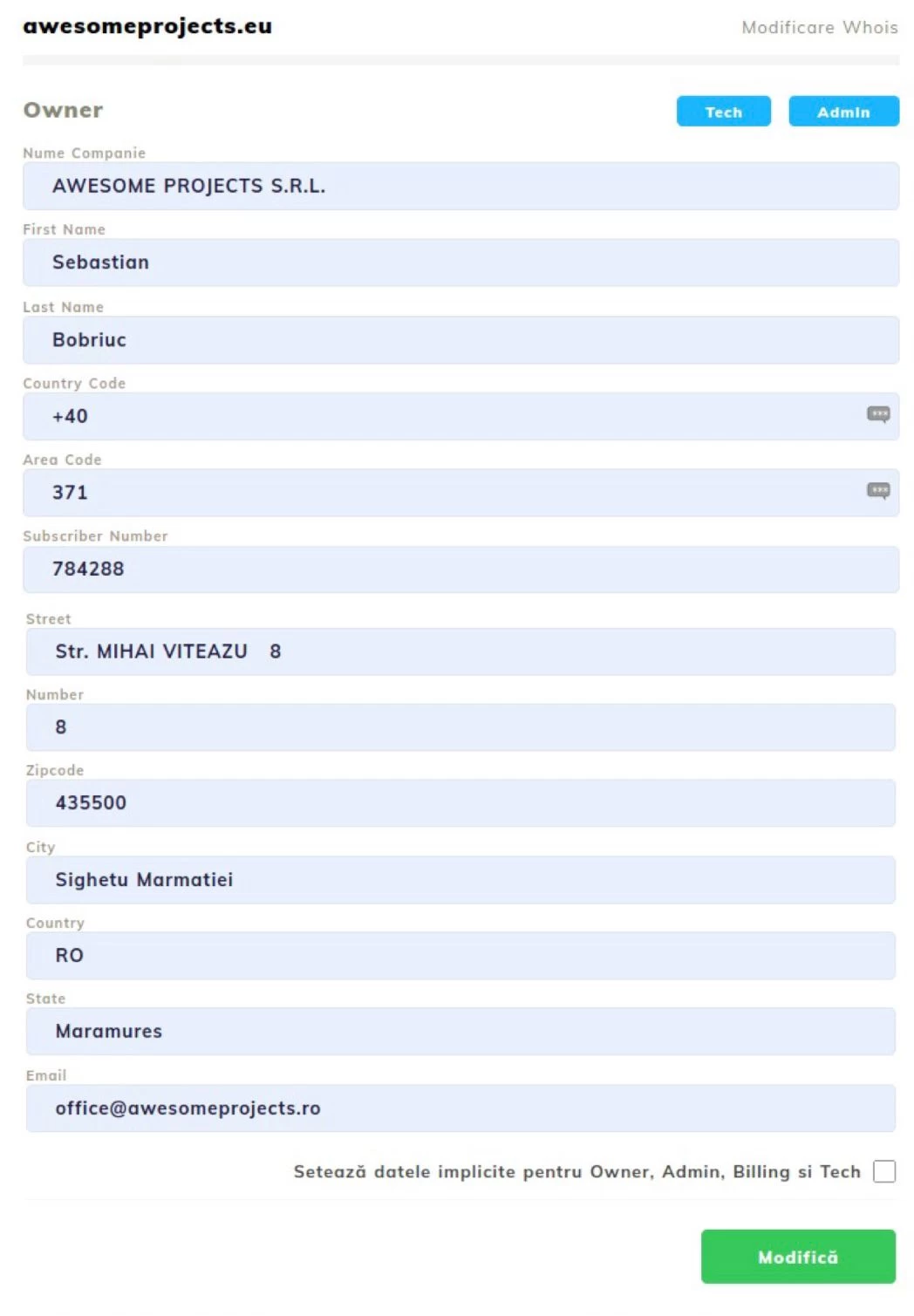 - Zmena informácií o majiteľovi v klientskej účte je možná pre globálne doménové rozšírenia (gTLD), ktoré nemajú špeciálne požiadavky alebo ďalšie poplatky;