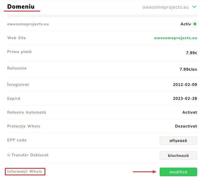 Po pristúpení k doméne, na novo otvorenej stránke navštívime sekciu Doména;- V tejto sekcii je sekcia WHOIS informácie zaujímavá
