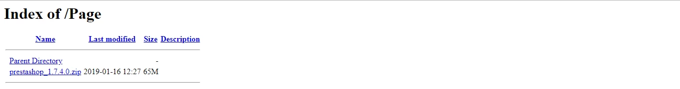 Ako odkaz smeruje na adresár, ktorý nemá nastavený súbor index (napr. index.html, default.html atď.), potom sa zobrazí obsah tohto adresára. Príklad zobrazenia: